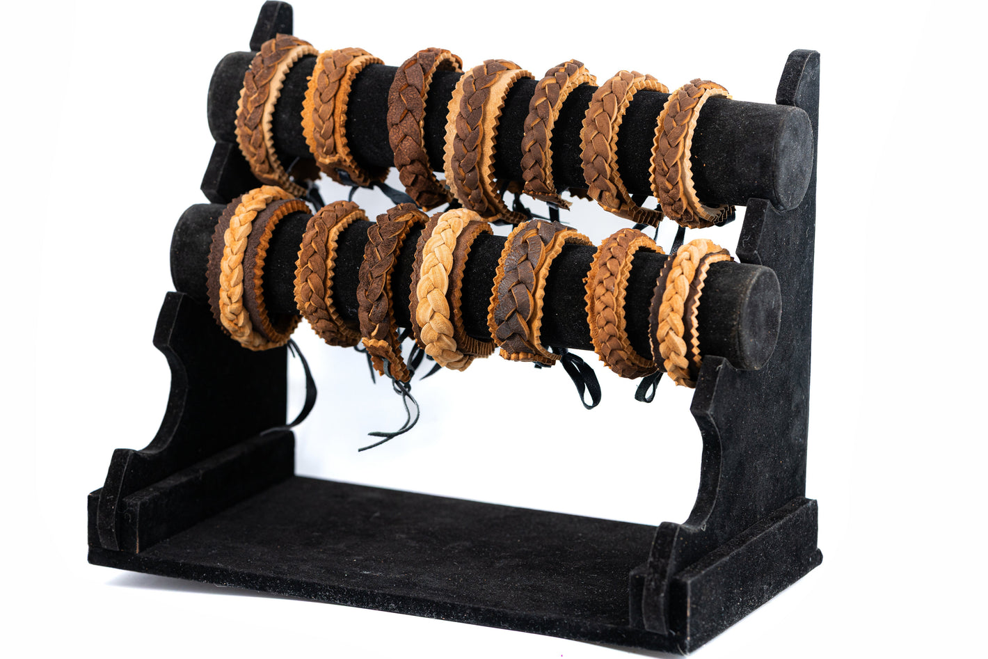 Earthy bags/purses and braided touchy bracelets.
